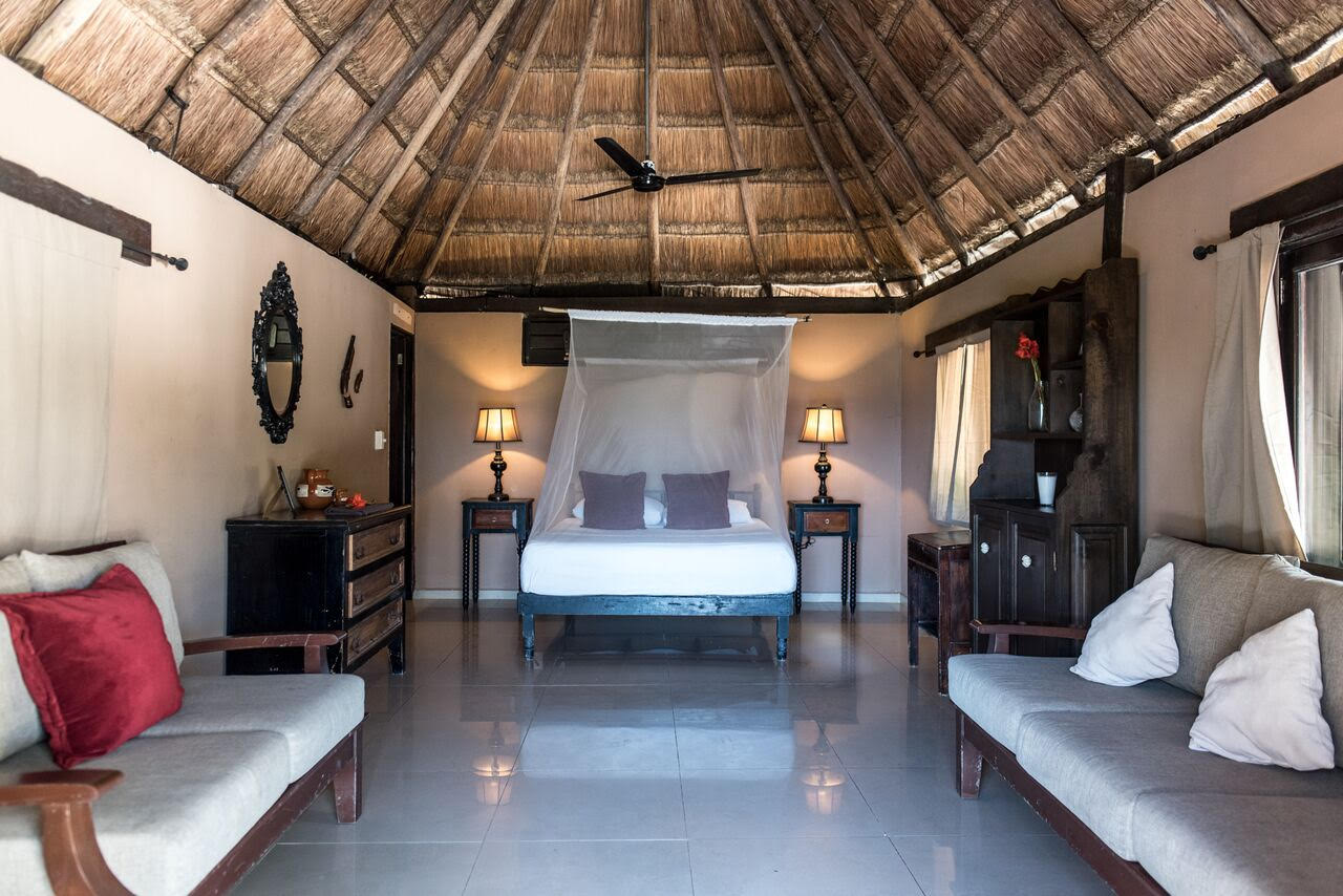 Amplia y romántica cabaña frente al mar. Te ofrecerá una experiencia fascinante descansando en su terraza privada, con una hermosa vista al mar.